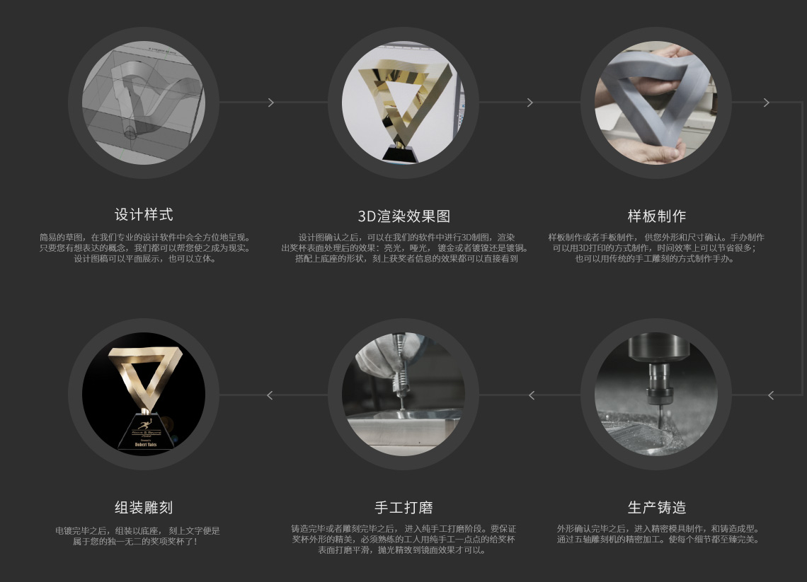 專注于獎杯的設計與制作,客戶遍布世界各國,涉及全球各類體育賽事、電影電視,音樂頒獎典禮及企事業單位禮品獎品定制。